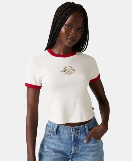 El polo para mujer Levi's Graphic Mini Ringer Tee es la combinación perfecta de estilo retro y comodidad moderna. Confeccionado en 100% algodón suave, este polo de fit slim presenta un largo crop que lo hace ideal para combinar con tus jeans de tiro alto favoritos. Su diseño se destaca por los detalles a contratono en el cuello redondo y las mangas cortas, junto con un sutil gráfico de Levi's en el pecho. Una prenda versátil y auténtica que captura la esencia del estilo Levi's, perfecta para tus looks diarios. Exprésate con confianza y un toque vintage.